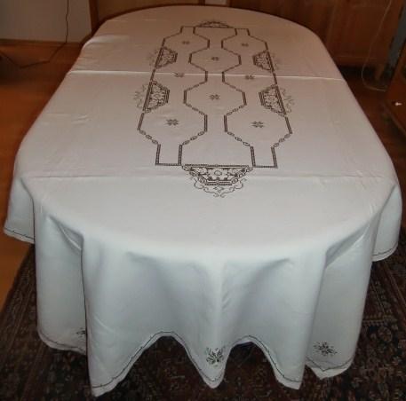 M833M Great hand-embroidered tablecloth in linen