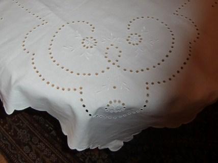M789M Fabulous magnificent white stitching embroidery tablecloth from the 1920s