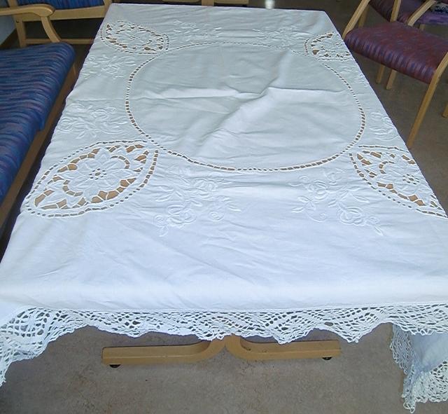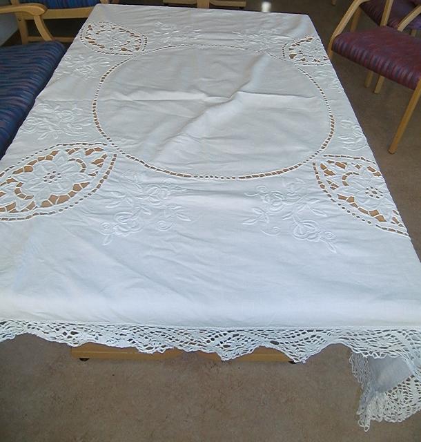Fabulous magnificent white stitching embroidery tablecloth from the 1920s. This is perhaps the most special tablecloth in my collection. It is over 90 years and are in constant use. it along with the other white cloth was given to a wedding in 1919. Probably they were when new. It's a bit of a work that is put into the cloth. The tablecloth is in thick white linen and has gorgeous white embroidery. It is pristine condition. It measures 1,60 meters long and 1,50 meters wide.
