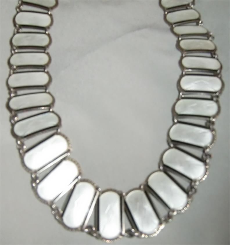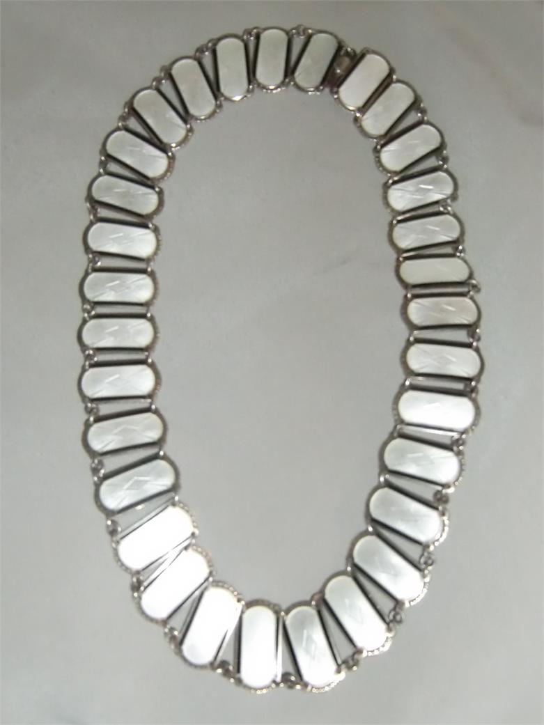 M850M Ivar T. Holth 925s and enamel NecklaceThis stunning necklaces are made from the well known Oslo, Norway company Ivar T. Holt. It is in white enamel with drawings and 925 silver. It belongs to the bracelet which is also shown. It is in outstanding condition. It measures 44.00 cm long and is 2.00 cm wide.