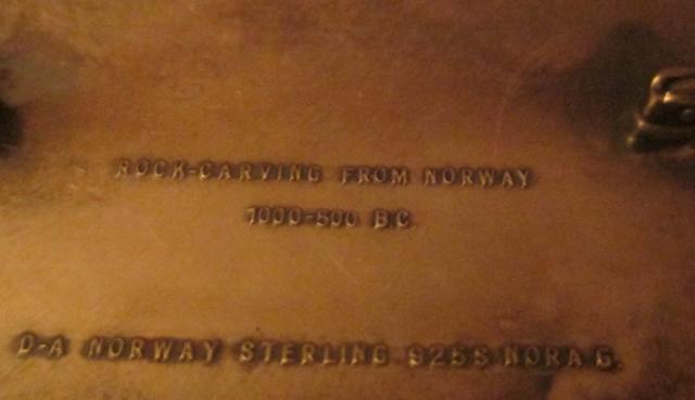 M968M Fantastic brooch Silver and enamel David Andersen designer Nora Gulbrandsen. A beautiful David-Andersen Norwegian sterling silver and enamel rectangular "rock carving" brooch. The back is marked, D-ANORWAY STERLING 925S NORA G." and "ROCK CARVVINGS FROM NORWAY 1000-1500 BC". Designer is Nora Gulbrandsen. The brooch measures 2 1/2 x1 1/4 inches (6.5 x 3.1 cm). Weight is 22.6 grams. Excellent condition. Nora Gulbrandsen (29 November 1894-14. February 1978) [1] was a Norwegian designer and craftsman.