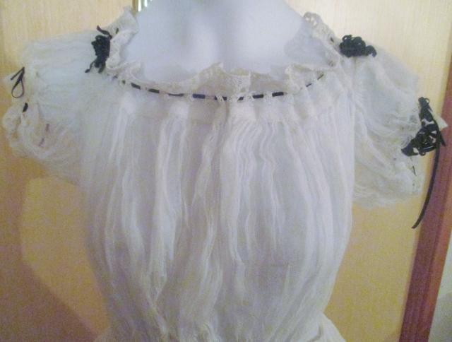 xxM1015M 1850-60 ball or wedding gown. This hand made gorgeous dress is made at 1850 to 1860's. It is thin cotton tulle and does not weigh much. At the time, light dresses were popular. About this dress has been made as wedding dress is unclear. Wedding dresses at that time had many colors. It might as well have been a ball gown. The dress is in very good condition.