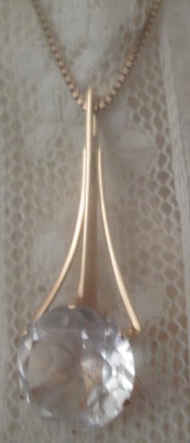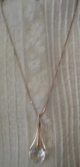 M540M 585-14k yellow gold pendant 9,9 grams with rock crystal quartz, yellow gold venetian necklace 42 cm. Takst Valuation N kr 10000 Rock crystal is the term for clear and transparent crystals of quartz. They are common in hydrothermal times, where hot water of several hundred degrees with dissolved minerals has flowed through cracks in the rock and formed precipitates of quartz and other minerals.