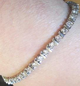 2,80 ct diamond 14 k white gold tennis bracelet. Length 7 1/2 inches, weight 11,8 gram. Forty seven 2, mm round diamond. Total weight of diamond 2,80 tcw. diamond clarity l 1, diamond color G-H. It is in excellent condition. 19.06.2017. Forsikringstakst/Gjennkjøpsverdi Insurance Valuation N.Kr. 35 000