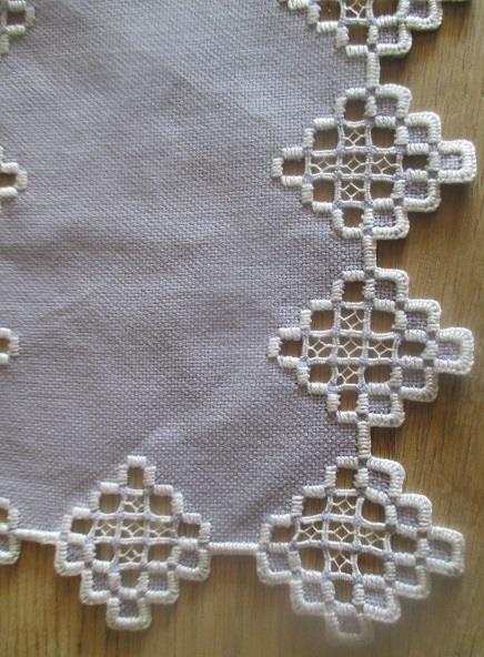 M875M Runner, tablecloth and tray rack in Hardanger stitching