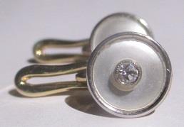 Art Deco 14K gold shirt buttons. 1920s shirt buttons in 14k gold, mother of pearls and two old-cut brilliants calculated weigh 0,06 ct. They weigh 2,9 grams and are in excellent condition. Takst-Valuation N. Kr. 8000