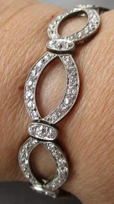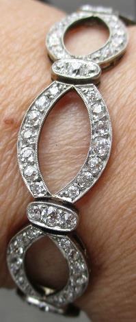 This beautiful bracelet is made in the early 1900s. It can be somewhat older. Its not stamped,it was normal at that time. However it is 14k+ tested. The bracelet consists og 153 old cut diamonds. Calculated total diamond weight 7,50ct. the bracelet weighs 20,45 grams.The bracelet is in very good condition.Takst-Valuation N.kr. 125 000