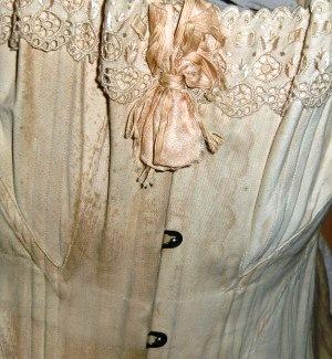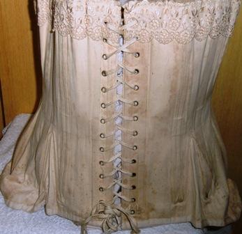M98M ca 1898 French Corset. Corset in cotton cream made around 1898-1900. A working class corset. Some spots here and there.