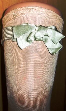 A green silk garter with big bow decoration.