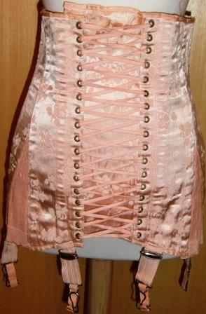 M243M 1930s Pink Corset. I bought this lovely pink rayon brocade corset in Stockholm, Sveden in 2003 and add it to my collection. It is in very good condition