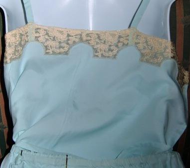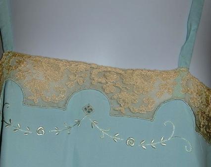Sets consisting of underpants and shirt in green rayon silk and cotton lace.