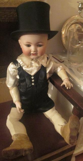 M993M Antique 1930s Black and Ivory Satin Toddler Boys Tuxedo Overalls