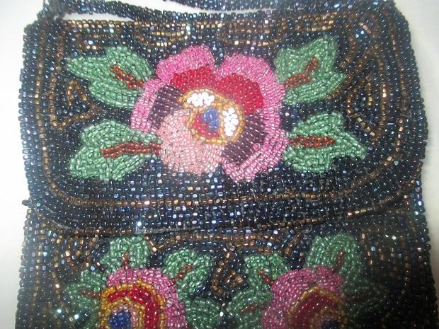 Lovely floral Victorian beaded evening handbag, rose floral motif.