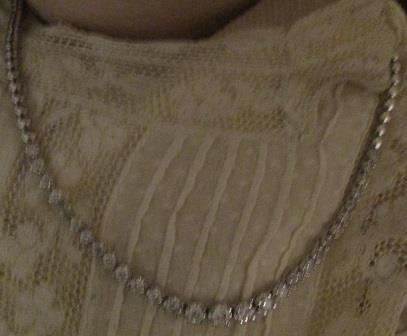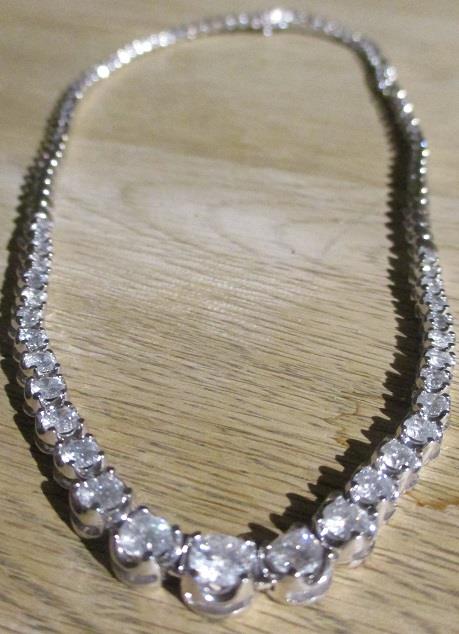 14k white gold and diamond necklace from 1960-70. The necklace is 40 m long and weighs 24,2 grams. It has 29 real diamonds calculated weight 3,55 ct. This is a decorative necklace in very good condition.