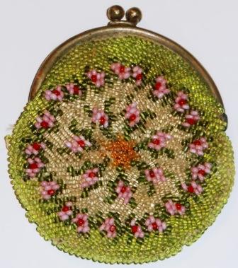 xxM264M VICTORIAN GLASS BEAD WORK PURSE 1880. The bead work is very good. The metal hinge has snapped. Size is 7.0 cm x 6,4cm. Weight is 29.4g. A wonderful and collectable original Victorian glass bead work purse. L