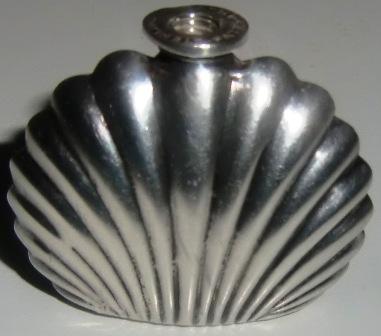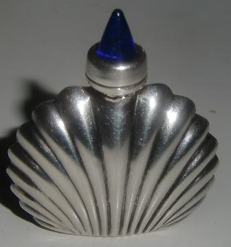 M544M STERLING SILVER PERFUME BOTTLE POST 1940. A petite 925 Sterling silver and cobolt glass perfume Vial. Mexican Sterling Silver. Eagle with No 21 (Ormex) Patented 7645. Height 1 1/2, Width 2, Depth 3/8. A wonderful little bottle in excellent condition.