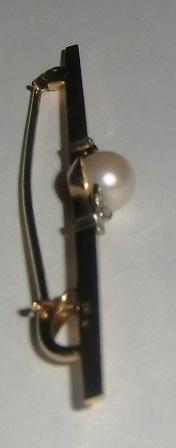 M567M 1960s David Andersen long Brooch 14K gold, culture pearl 5,6 mm and 6 small rose cut diamonds, weight 2,6 gram.