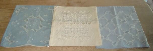 M599M Three Hardanger sewn pillowcase