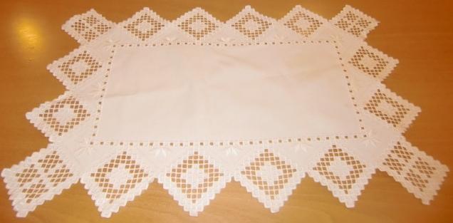M875M Runner, tablecloth and tray rack in Hardanger stitching