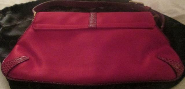 xxM977M Gucci Red Satin Evening Bag / Gucci Buckle, Rhinestones Snake Leather Trimming RED SATIN WITH RED SNAKE SKIN LEATHER AND RHINESTONES. THE FAMOUS GUCCI BUCKLE WITH RHINESTONES, WHICH ALSO SERVES AS THE CLASP FOR THE BAG, BY HAVING THE TOP FLAP SLIDE IN TO IT. OPENING AND CLOSING IS EASY AND SECURE. RED SNAKE LEATHER HANDLE AND TRIMMING ALL AROUND THE BAG. SAME RED SATIN LINING WITH DESIGNER LABEL ON THE OPEN SIDE POCKET. GORGEOUS AUTHENTIC/ORIGINAL GUCCI WITH THE ORIGINAL DUST BAG.