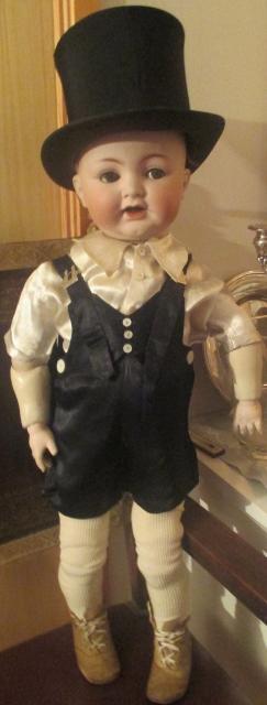 M993M Antique 1930s Black and Ivory Satin Toddler Boys Tuxedo Overalls