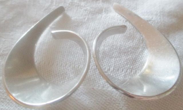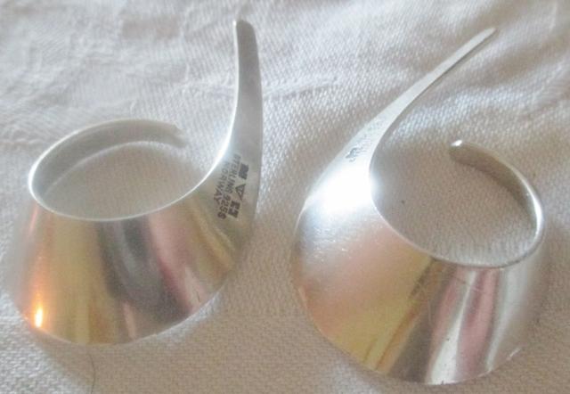 xxM1047M Vtg 60s TONE VIGELAND Sling Earrings Sterling Silver NORWAY Scandinavian Modern.Tone Vigeland born August 6 1938 in Oslo, Norway. Vigeland considered one of the world's top jewelry artists. It culminated with her retrospective exhibition as well as in Oslo also has been shown in the United States and Japan (1995-1998). She is represented in the major museums in the world, and in Norway, the three decorative art museums extensive collection of her jewelry. Jacob Prize 1965. This is the famous earrings sling described in numerous books. They weigh 16.8 grams is about 5 cm and is in excellent condition.
