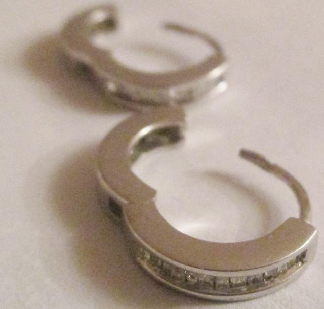 xxM1080M White gold natural diamond earrings. Gorgeous natural diamond earrings set in solid 14k white gold. 26 baguette cut diamonds weight 0,30 CT are channel set in these beautiful earrings.Weight 4,2 gram The earrings are in excellent condition. The earrings are STAMPED 14k.