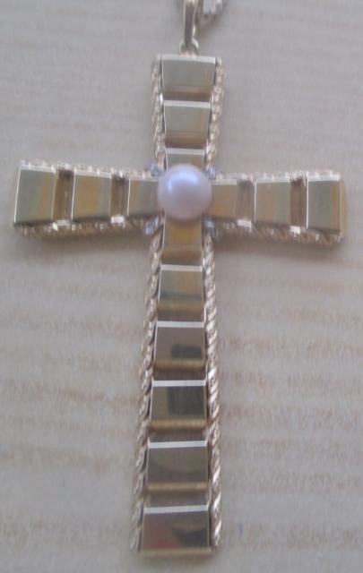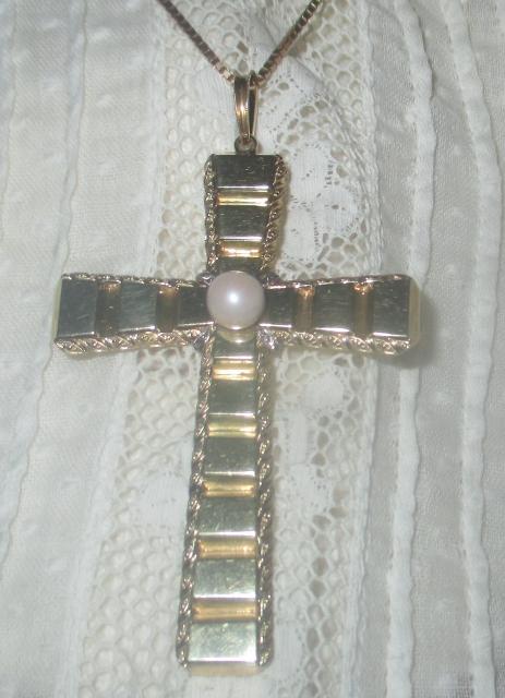 xxM1020M Pendant cross 14k-585 gold and Pearl