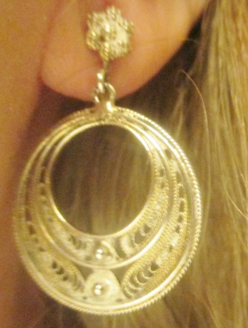 A pair of 830 silver handmade earrings with solid filigree work with screw. The ertrolig made before 1940s. They measure 3.5 cm x 2.5 cm. They are in excellent condition.