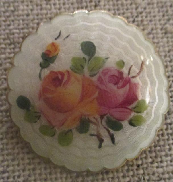 xxM1135M Beautiful flowers brooch showing roses by Ivar T. Holth. Beautiful brooch in perfect condition in 925S and enamel. It is round and 4 cm in diameter. Ivar T. Holth f. 1909 d. 1977