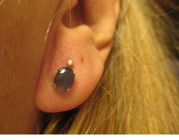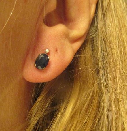xxM1200M 14k white gold diamond and sapphire earrings.