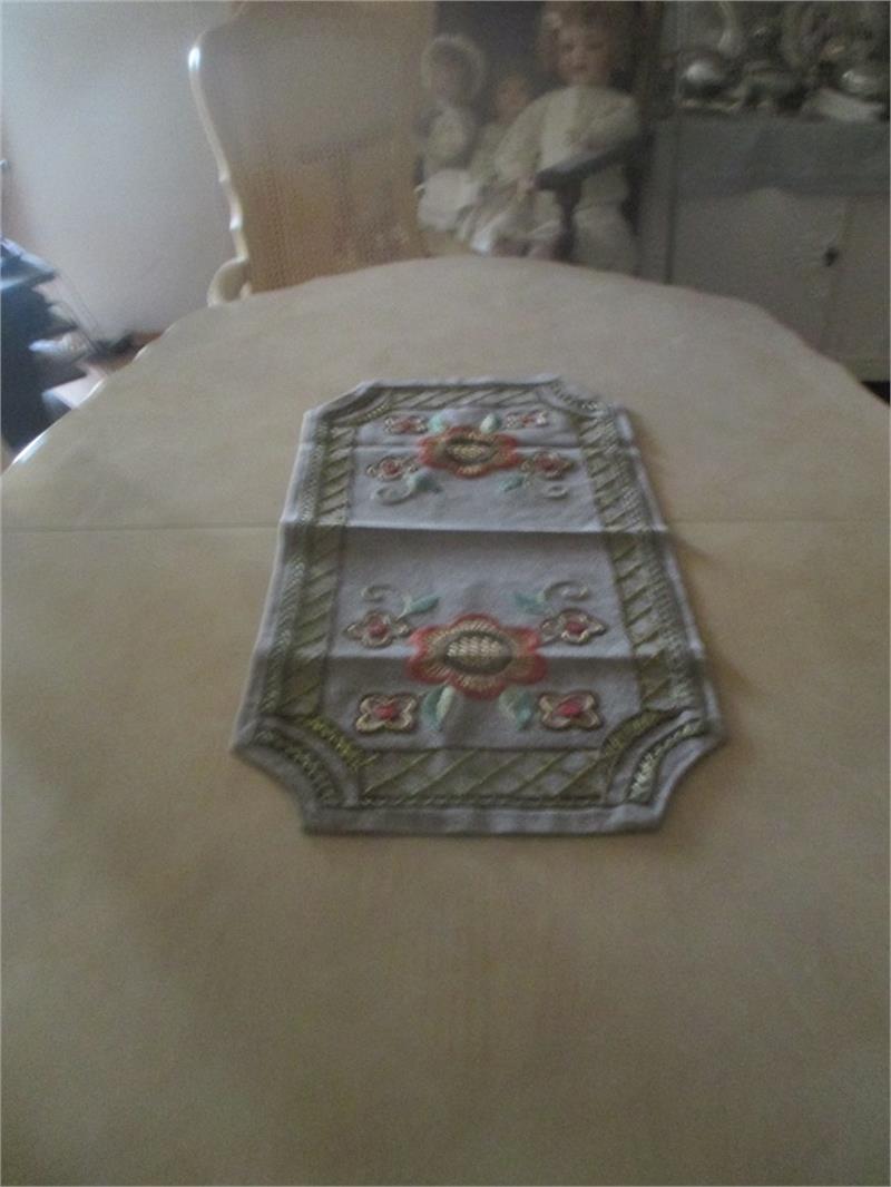 Three beatiful embroidered linen fabrics. The lrhes measures 1,50 meter long plus fringes and it is 0,80 meters wide. The second larges measure 0,70 meters long and it is 0,38 meters wide. The smallest measure: 0,67 meters long and it is 0,38 meters wide.The two smallest are very close to earch others in size. These tablecloth are hand embroidre and in ecellent condition