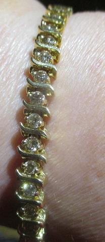 Ladies 44 round diamond tennis bracelet in 14k yellow gold. Diamond colour J, Clarity SI. Total carat weight 2,50 T.C.W. The bracelet weight 15,9 grams. It is in ecellent condition. Takst- Valuation N.Kr 35 000