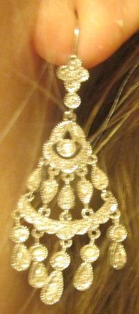 14k white gold Diamond flower chandelier drop dangle earrings Leverback filigree. Weight 8,2 gram, 40 brilliants calculated weight 0,40 ct.