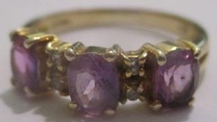 14k yellow gold ring 2,2 grams with 3 synthetic sapphires 4 brilliant Diamonds counted weight 0,04 ct. Takst-Valuation N. Kr. 3500