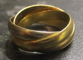 18k gold ring made by Cartier. Yellow/rwhite/red ring in three parts 3,5 mm, 7 grams. Takst-Valuation N.kr. 12000