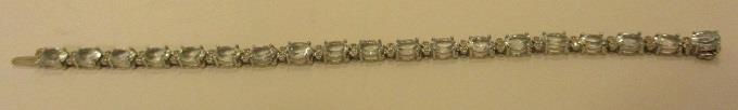 Aquamarine and diamond tenis bracelet, 14k white gold. There are 19 aquamarine and 38 round faced 8/8 diamond, calculated weigh 0,15ct. The bracelet measures about 20 cm lomg and weighs 13 grams.Takst-Valuation N.Kr. 22 000