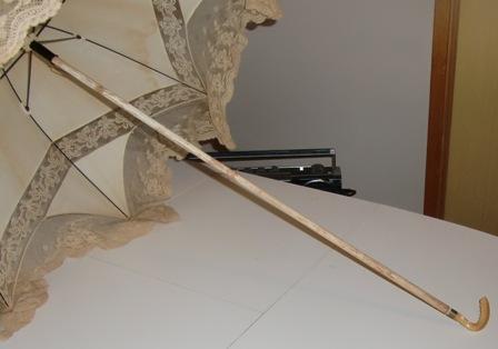 Cotton lace parasol with bone handle.