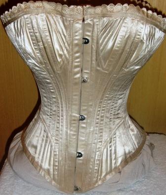 M89M ca 1883-84 White sateen Wedding corset. This is a wonderful corset. In fact the best i have from the period 1870-1901. It is in white sateen with embroidery and lined inside of thick white cotton. It has a label who reads M/F Special and a number. It is in mint condition.