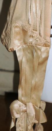 It is in the thick cream raw silk with touches of silk satin.