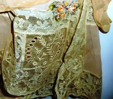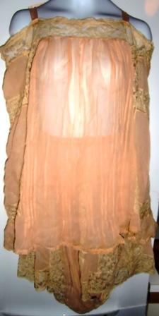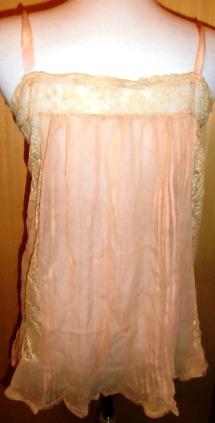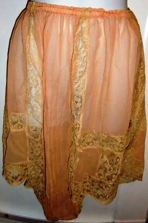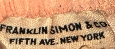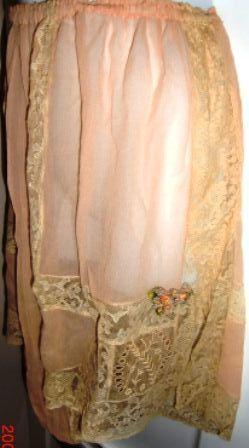 M171MGreat underwear from fifth Avenue. This is a fabulous lingerie set consisting of shirt and panties. This type of underwear came on the market in 1908. This set was made for a wedding in 1917. It is made in shiffong and lace and silk flower arrangements. The label read: Franklin Simon & co Fifth Ave. New York. It is in very good condition.