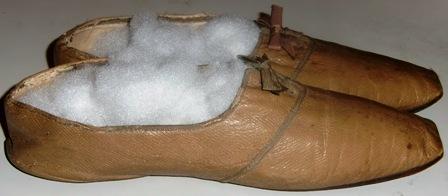 Shoes dating to around 1790-1810. They are made of a pumpkin-colored