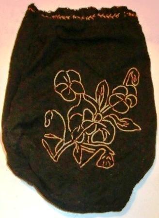 Measures 12 x 8.5" and is hand beaded with colorful glass beads. The beading makes this black silk - heavy lined purse heavy. Inside the purse it is a flower embroidery bery nice