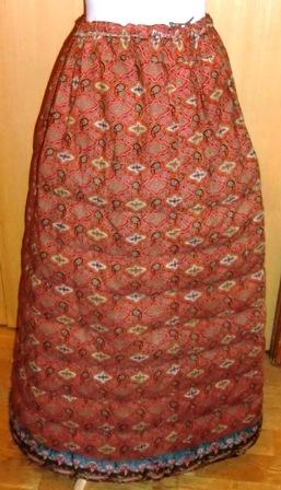 xxM357M 1866 fabulous winter petticoats gold medal winner 1862 and 1865. Fantastic petticoats quilted with down. Gold medal winner London 1862, Dublin 1865. Created by Booth and Fox. Under the skirt is difficult to obtain. A true treasure for the early textile collector. It is in good condition.