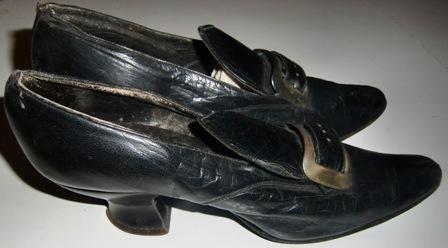 Pr Vintage Ladies Shoes circa 1912 with original buckles. 9" long - 2 1/2" wide - Condition; GOOD.