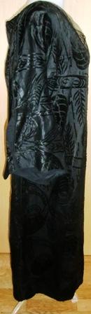 xxM495M Black Velvet Dress From Silkehuset Christiania. Dress the thin silk velvet with chiffon decorations. It has wide sleeves and decoration on the back. It is inspired by the Far East. An elegant dress in excellent condition. It is made ca 1916-18