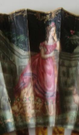 M541M 1860-70s Horn Fan with Beauty in Period Dress.