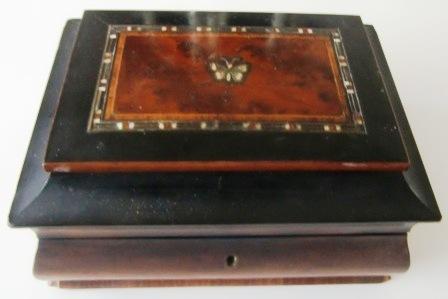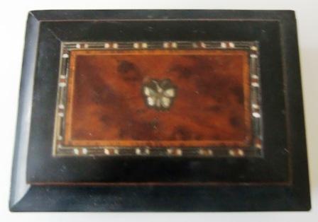 WITH MOP INLAY AND DIFFERENT WOODS, HAVE DEEP INSET MIRROR, FELT