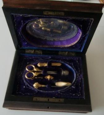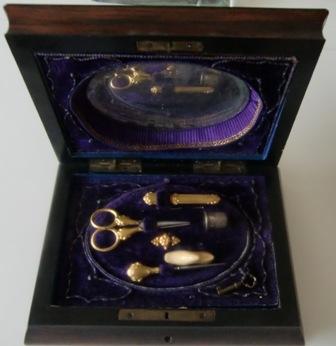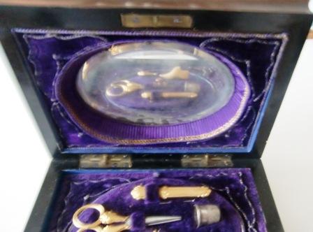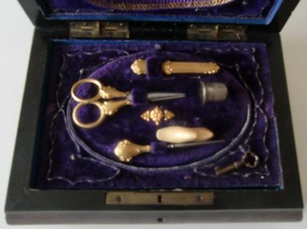 REATTACHED. AND ORIGINAL THIMBLE IS MISSING, I HAVE ADD TO MY COLLECTION A lovely antique sterling silver thimble THERE IS A LITTLE IV ORY SHOE ??