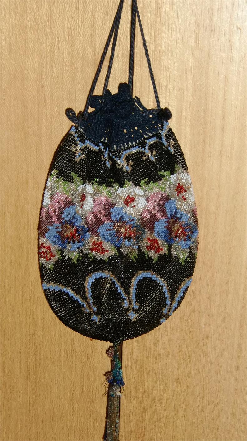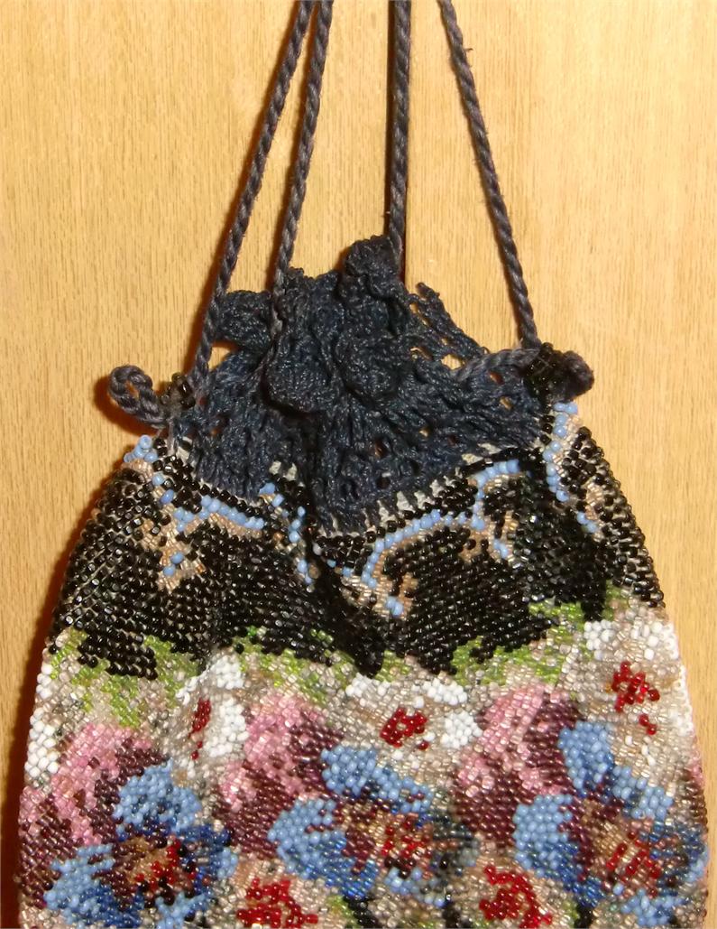 Glass Beaded Crochet & Drawstring Purse